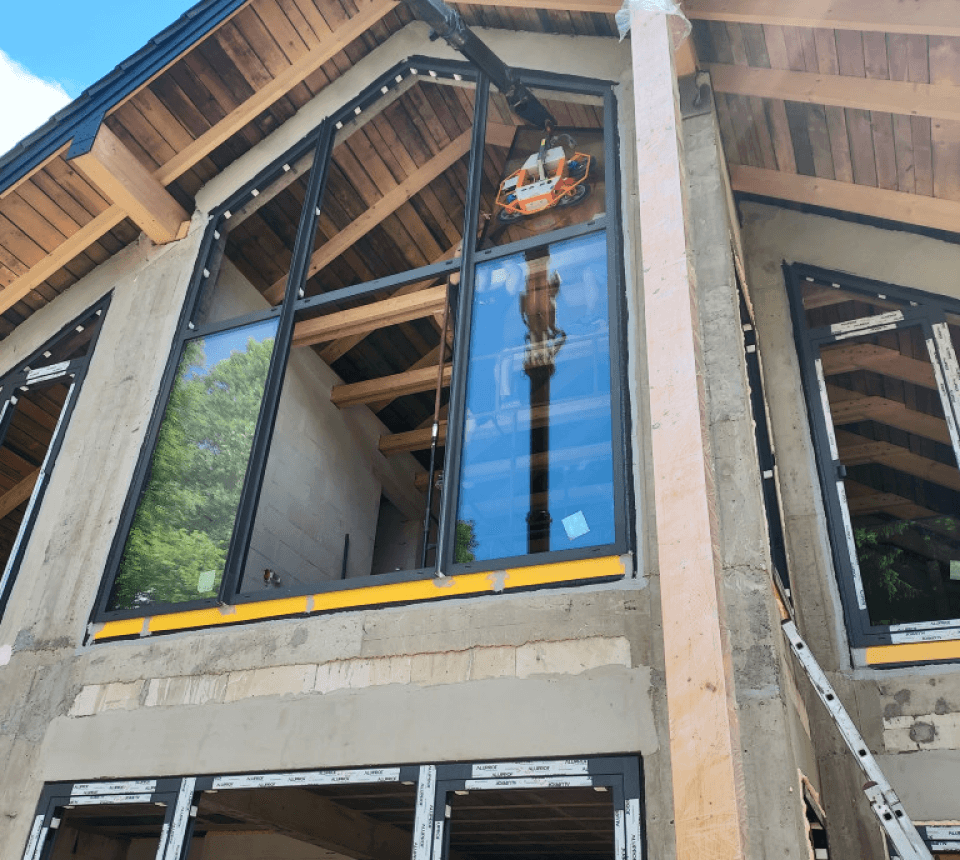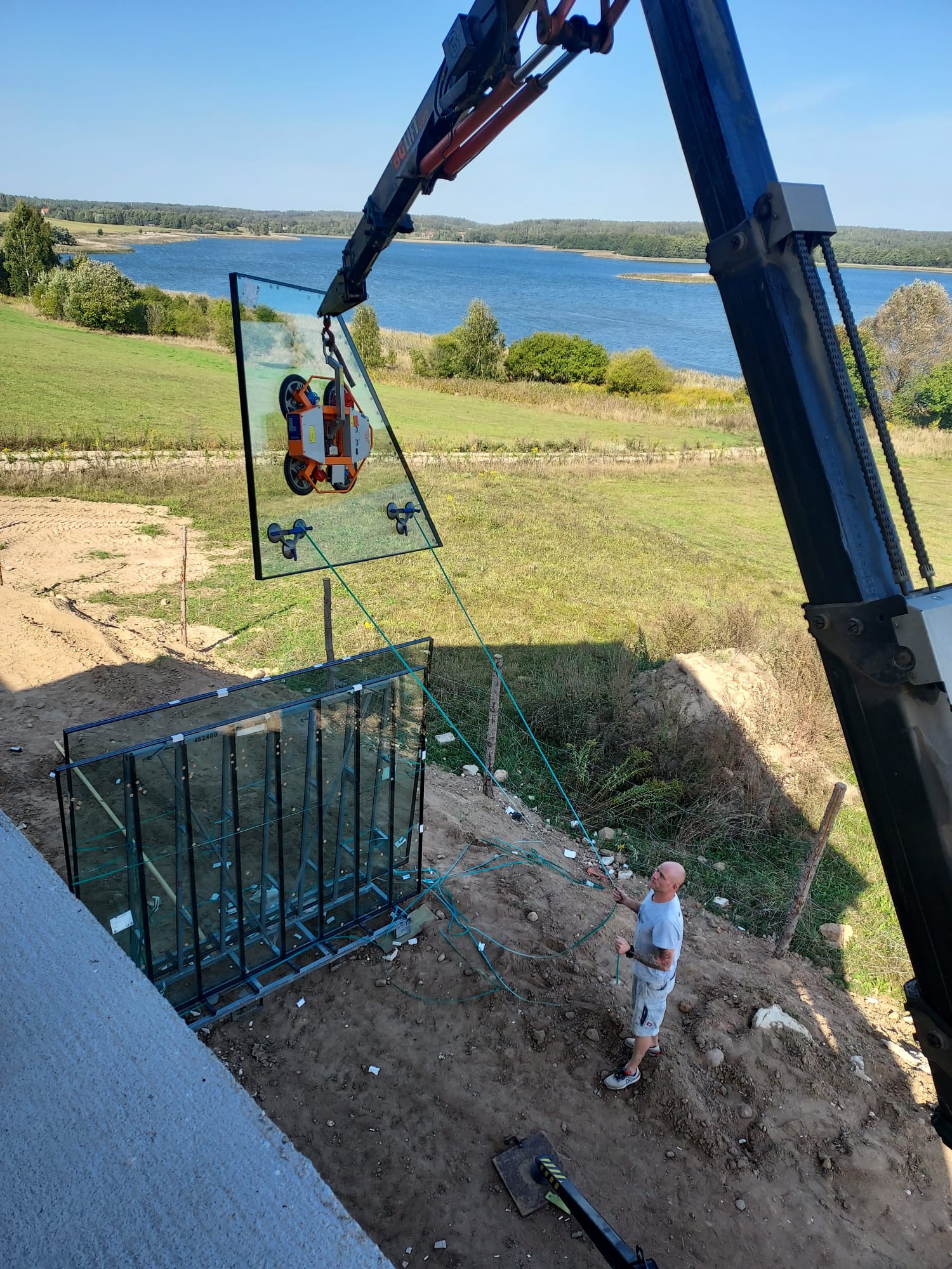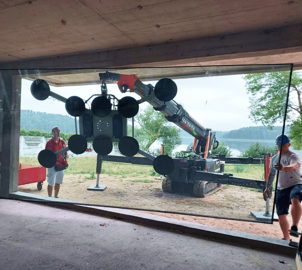 Montaż ślusarki aluminiowej z najprawdopodobniej największą szybą na mazurach!
