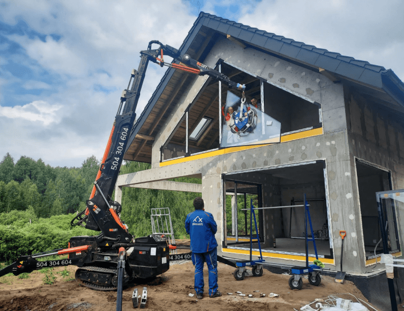 Ekipy Studia Okien Dardziński montujące okna, drzwi oraz bramy garażowe są nie tylko odpowiednio przeszkolone i doświadczone w montażach, ale też wyposażone w zaawansowane sprzęty i narzędzia. Żurawie, podnośniki czy wózki pomagają w transporcie wielkogabarytowych przeszkleń, a potem ich umiejętnym osadzaniu w murach. Pracujemy tak, aby spełnić Twoje oczekiwania oraz przeprowadzić prace możliwie jak najszybciej i sprawnie, bez zbędnych przestojów. Działamy w każdych warunkach.