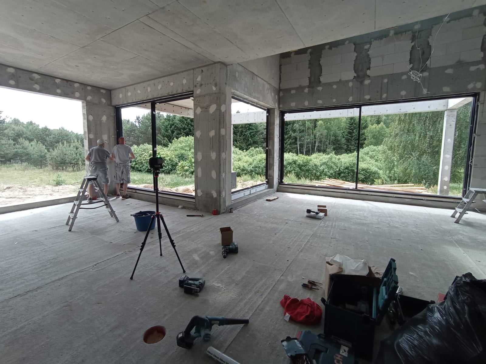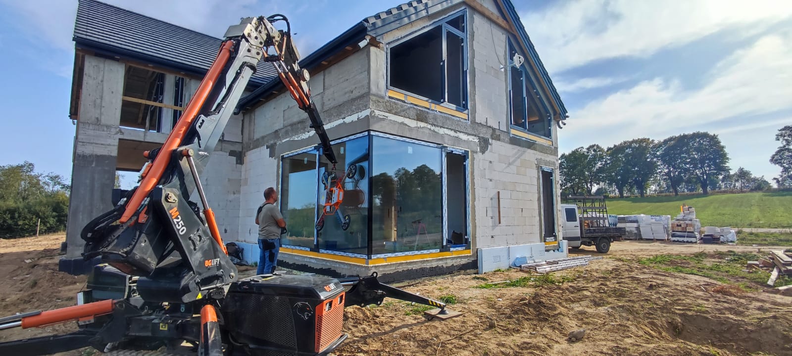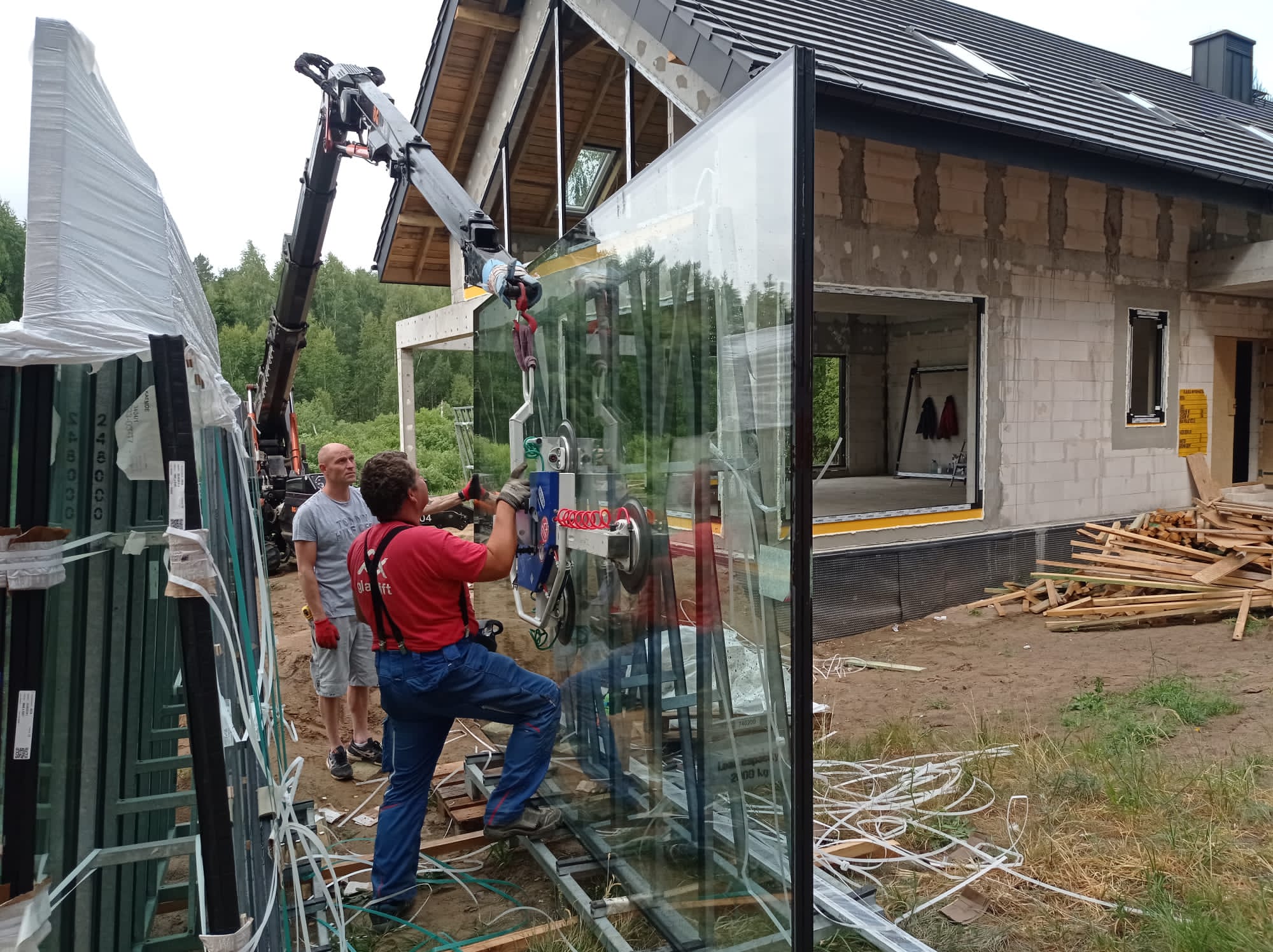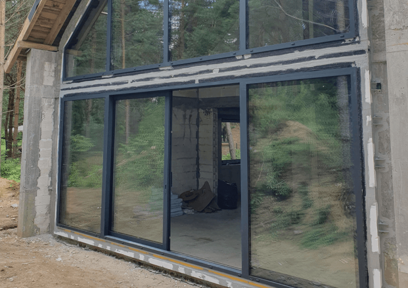 Montaż ślusarki aluminiowej z najprawdopodobniej największą szybą na mazurach!