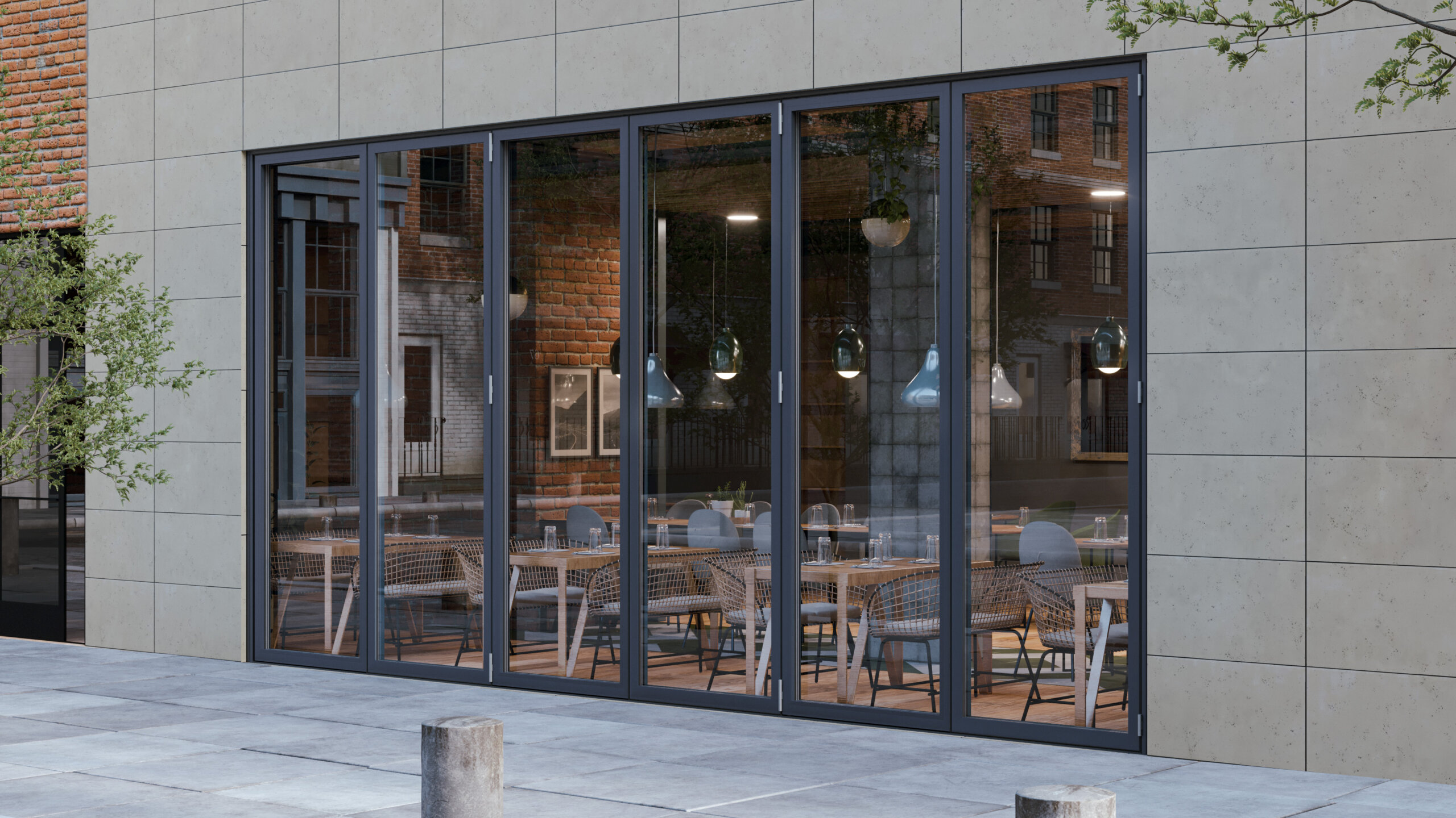 Okno tarasowe harmonijkowe pozwala na dowolną konfigurację otwierania, od tradycyjnych układów po wieloskrzydłowe rozwiązania panoramiczne.