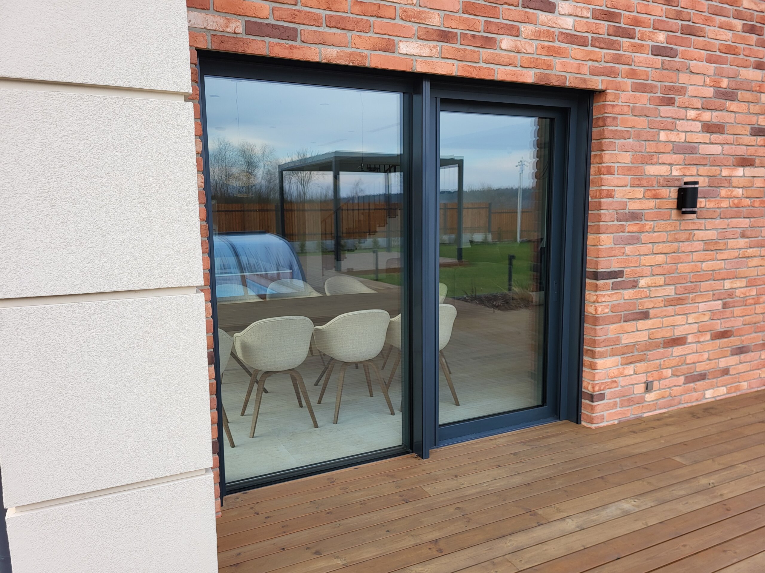 Dzięki przesuwnemu systemowi, okno tarasowe HST pozwala na maksymalne otwarcie przestrzeni bez zabierania miejsca wewnątrz pomieszczenia. To panoramiczny widok i mnóstwo światła w środku.