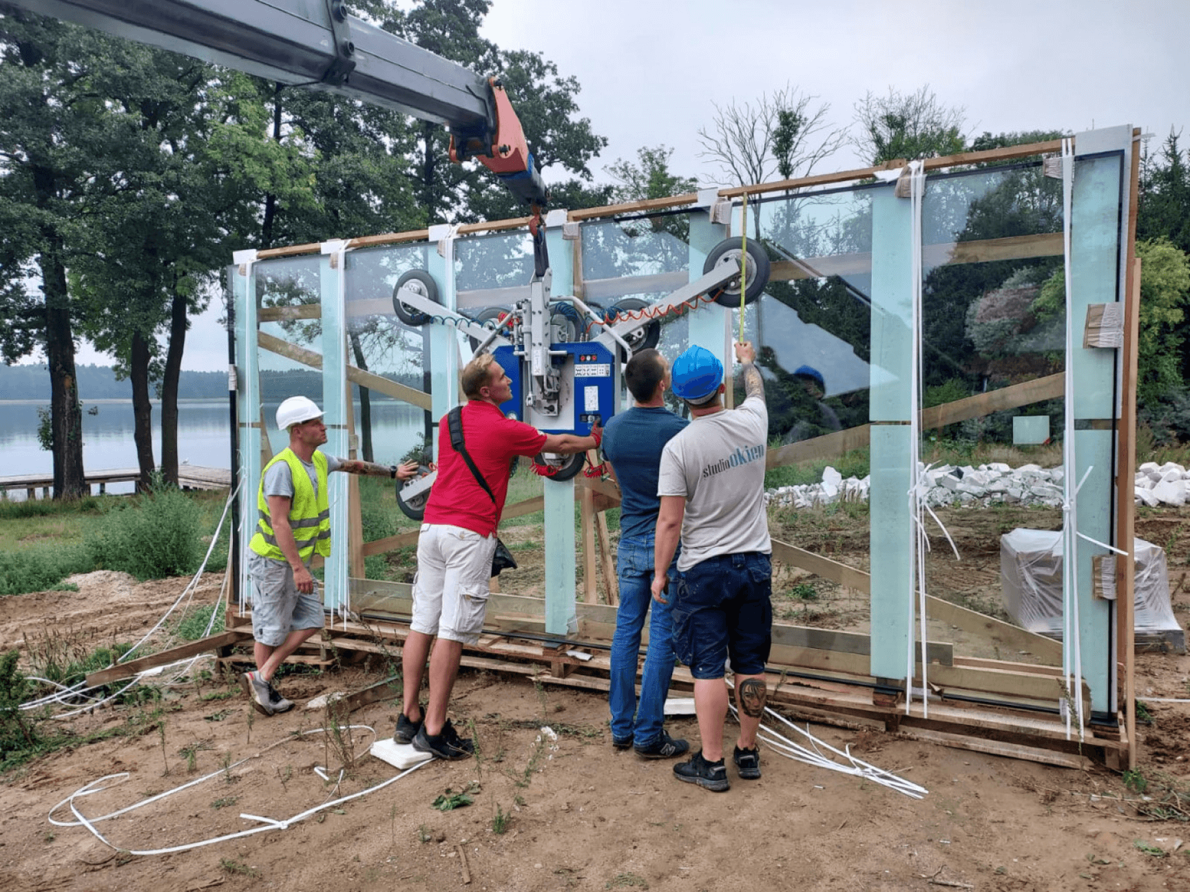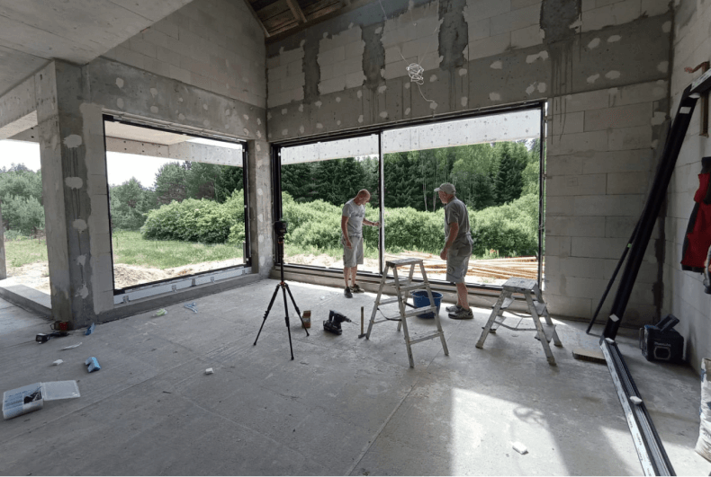 Montaż ślusarki aluminiowej z najprawdopodobniej największą szybą na mazurach!