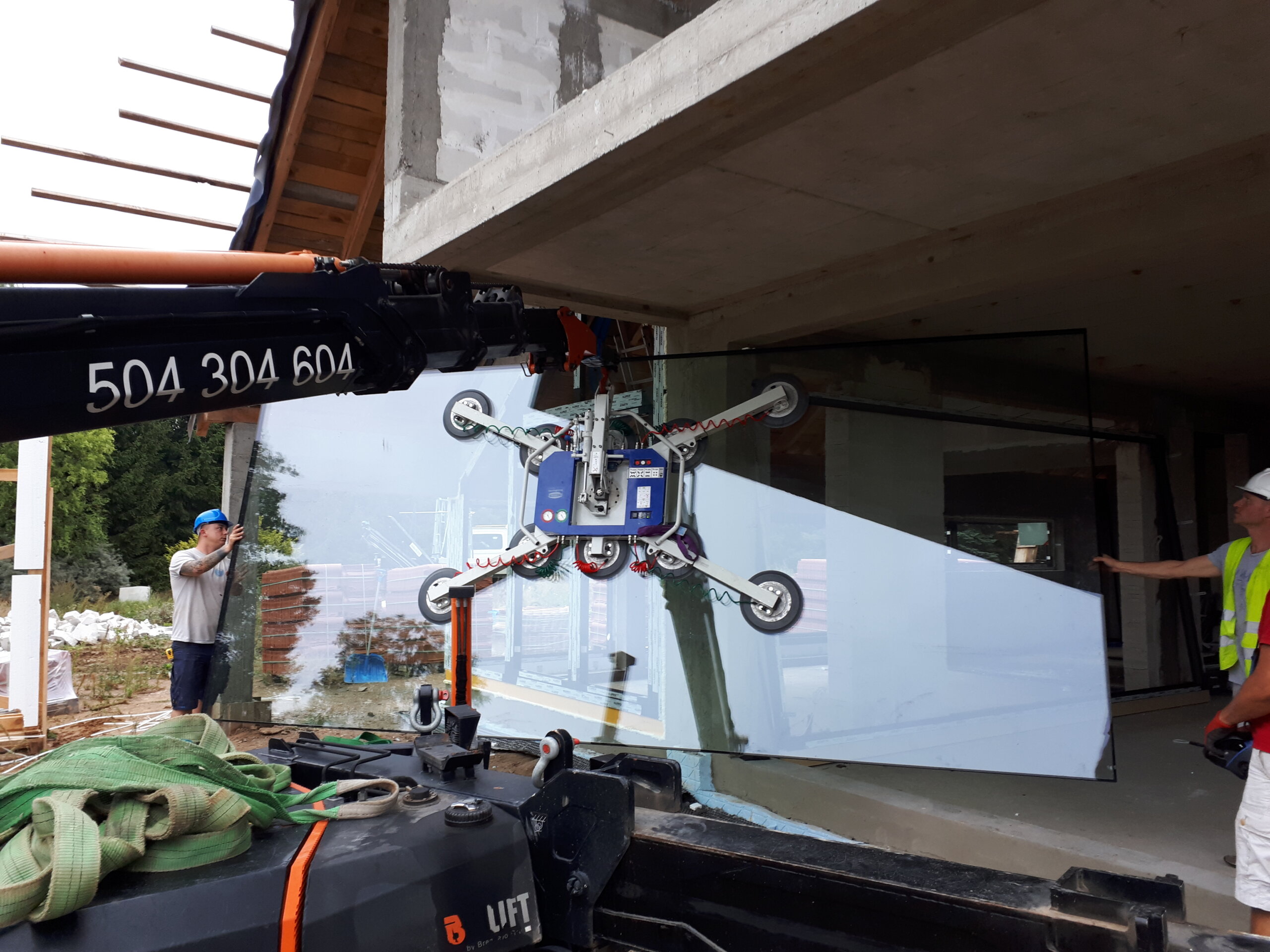Przedstawiamy realizację, w której mieliśmy przyjemność zmierzyć się z ogromną szybą o wadzę 1000 kg! Niby jedna szyba… jednak biorąc pod uwagę wymiar, niespełna 5400 x 2400 mm oraz delikatność samego materiału, jakim jest szkło.