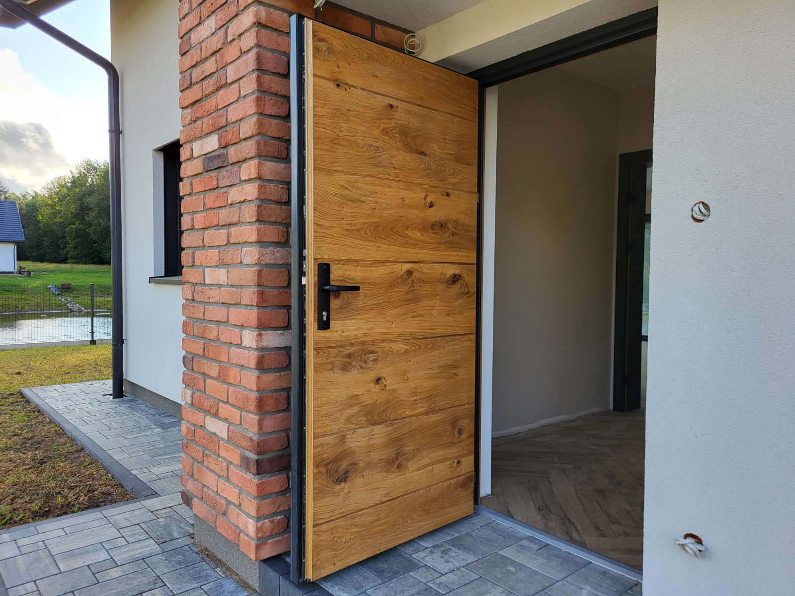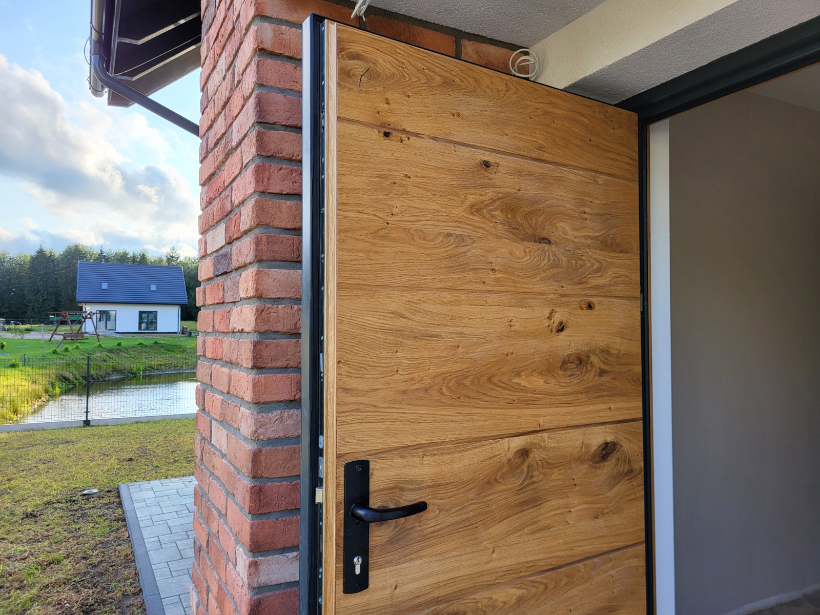 Prezentujemy jedyne w swoim rodzaju drzwi drewniano aluminiowe marki CAL! Są to jedyne drzwi o konstrukcji drewnianej które nie wymagają zadaszenia i ochrony przed negatywnym wpływem warunków atmosferycznych, dzięki zastosowaniu zewnętrznej nakładki aluminiowej zarówno na skrzydle, jak i ościeżnicy. Jednak trwałość to nie jedyny atut tej konstrukcji, wizualnie drzwi prezentują się niesamowicie! Zewnętrzna strona pasuję do nowoczesnego budownictwa, natomiast wewnętrzna drewniana dodaje elegancji i ciepła wnętrzu twojego domu.